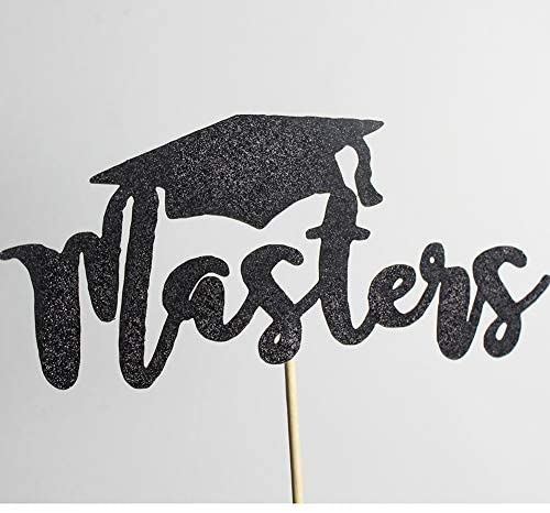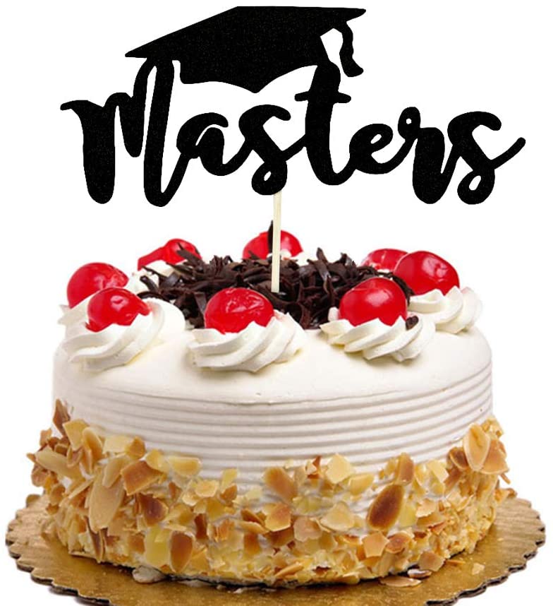 WoHappy Black Masters Cake Topper – Glitter Congrats Grad Party Decors- Class of 2019 Graduation with Graduate Cap Party Decorations