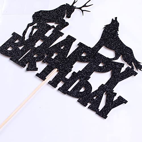 wolf cake topper wolf silhouette happy birthday cake decoration kids boys girls birthday party glitter black supplies decoration