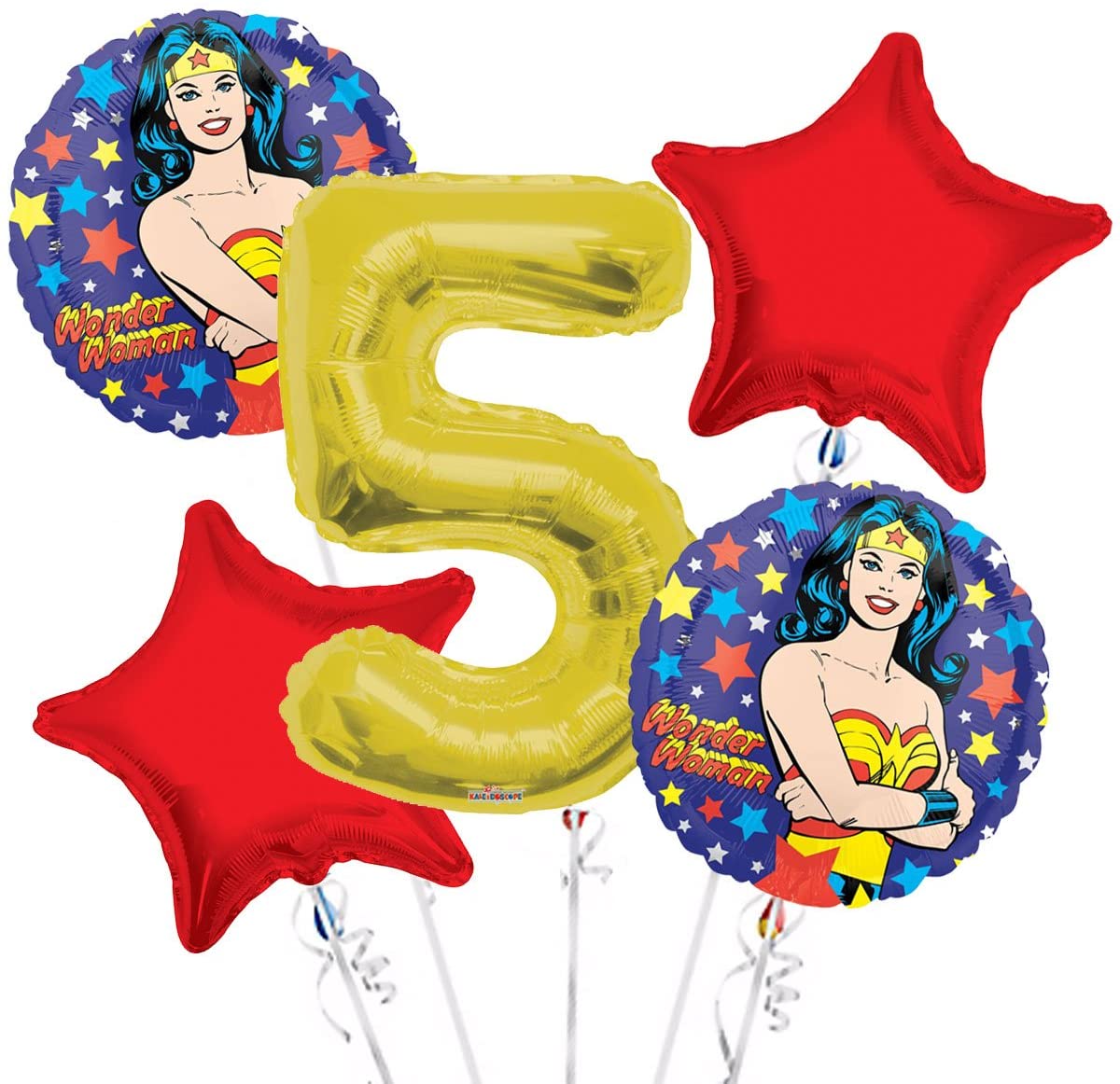 Wonder Women Balloon Bouquet 5th Birthday 5 pcs – Party Supplies