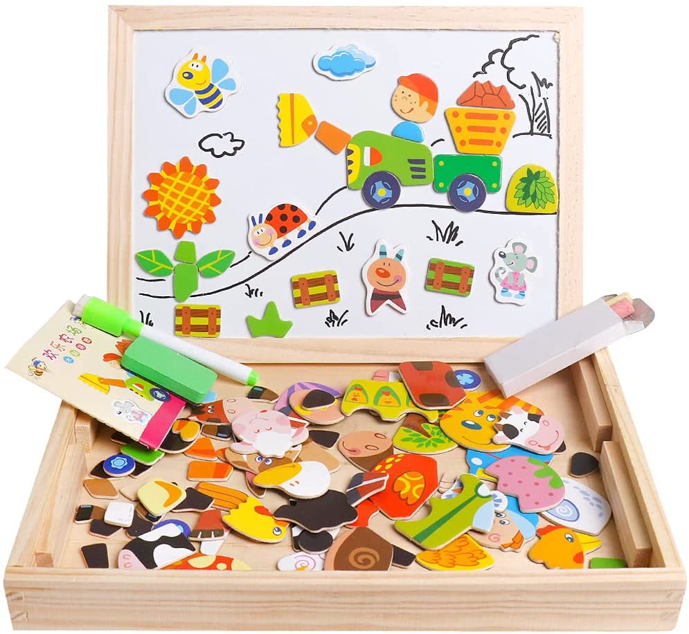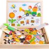 Wooden Educational Toys Magnetic Puzzles for Kids Wooden Art Easel Double Side Educational Learning Games for Boys Girls Children