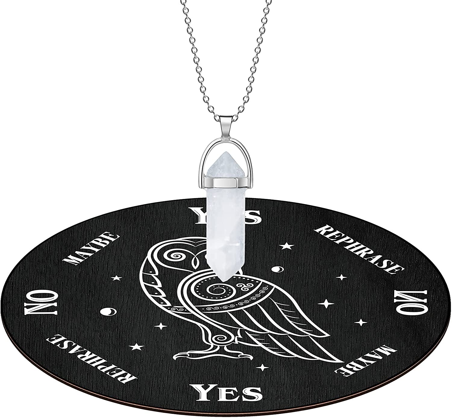 Wooden Pendulum Board Dowsing Divination Metaphysical Message Board Wooden Carven Board Witchcraft Supplies Beginner with a Crystal Necklace Witchcraft Wiccan Altar Supplies