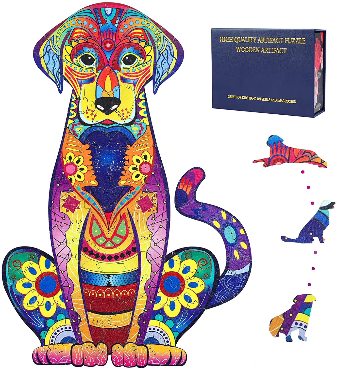 Wooden Puzzle,Magic Wooden Puzzles for Adults,Charming Dog Wooden Jigsaw Puzzles,Irregular Animal Shaped Puzzles Best Gift for Halloween Christmas Thanksgiving (Size:S-S-9.25u201dx6.3u201d)