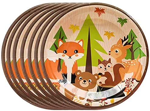 Woodland Animals Party Supplies Set Including 8pcs Plates, 10pcs Napkins, 1pcsTablecloth, made of environmentally friendly hard paper shell.