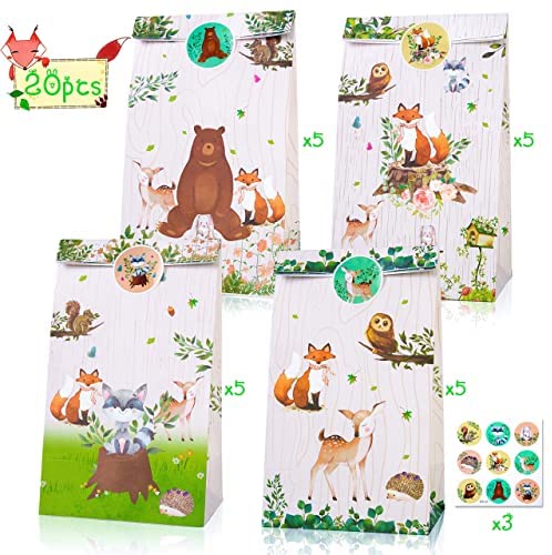 Woodland birthday party favor gift bags,package includes 20pcs woodland party gift bags in 4 different patterns with adorable stickers. Designed wi…