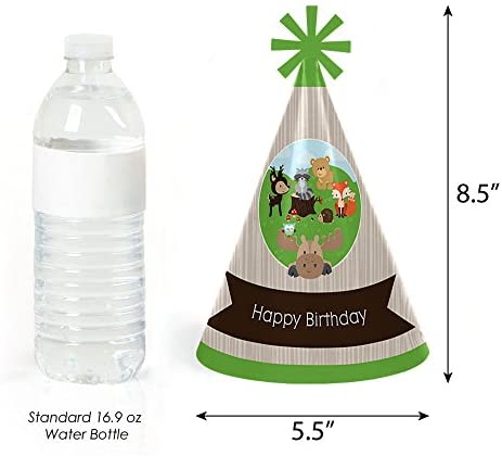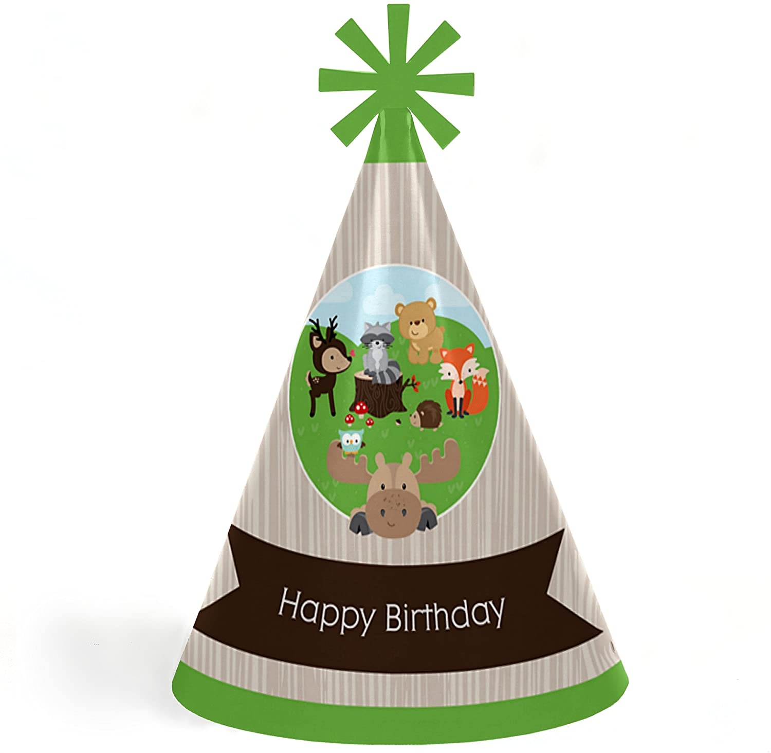 Woodland Creatures – Cone Happy Birthday Party Hats for Kids and Adults – Set of 8 (Standard Size)
