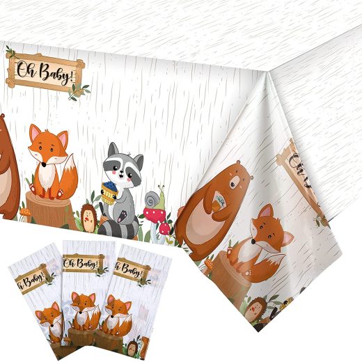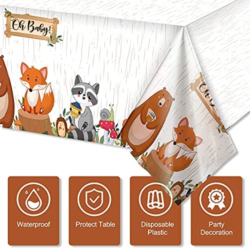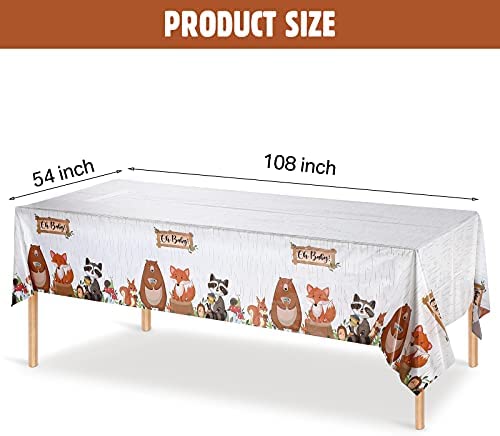 Woodland Tablecloth Animals Safari Tablecloth Woodland Table Covers Plastic Jungle Wild Creature Zoo Party Table Cloth for Kids Birthday Baby Shower Decoration Supplies, 54 x 108 Inch (3 Pieces)