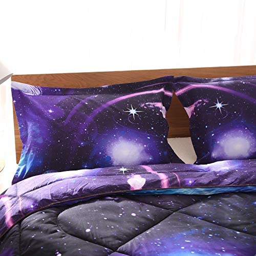 Wowelife Galaxy Comforter Full Blue and Purple Galaxy Full Bed Set Colorful 5 Piece with Print Comforter(Full, Dark Purple Galaxy)