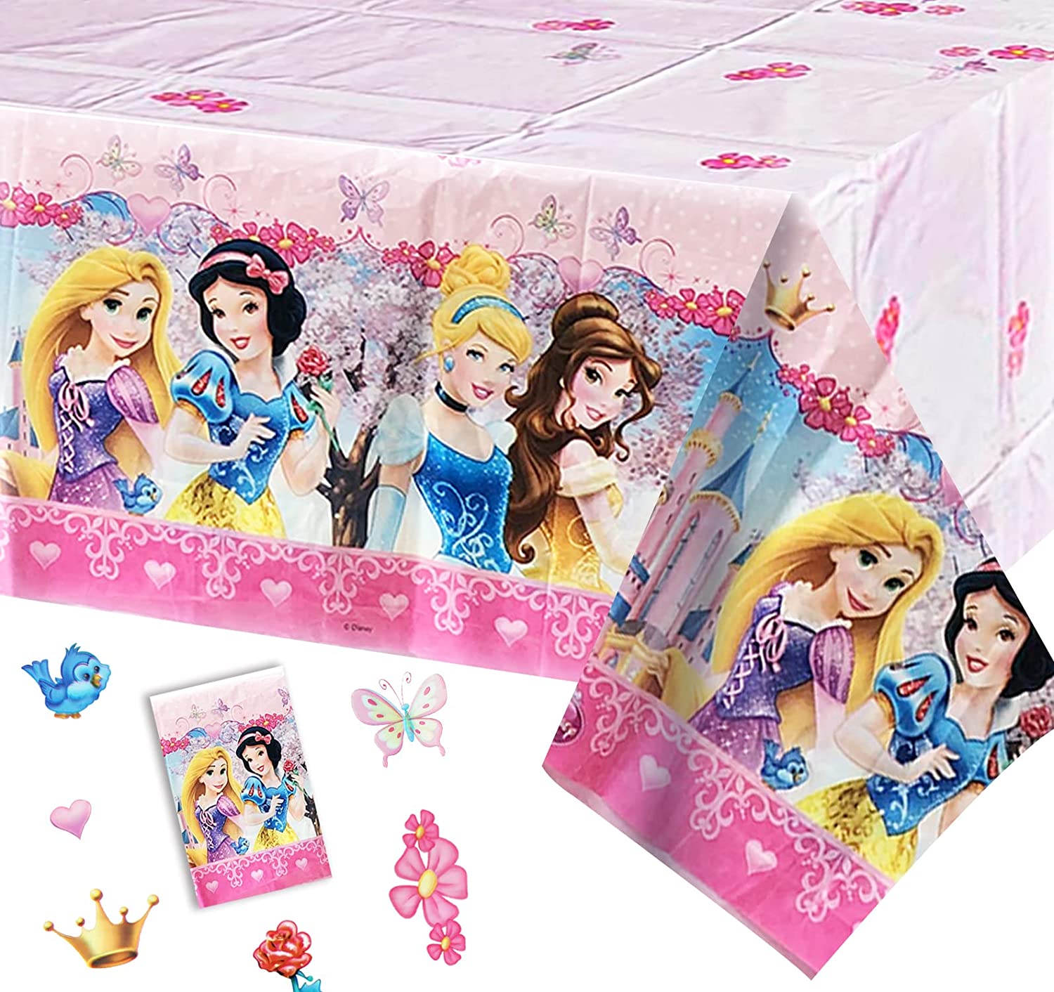 WRQ GCH Princess Table Cover Princess Birthday Party Decorations Pink Princess Tablecloth Princess Theme Party Supplies for Grils Baby Shower