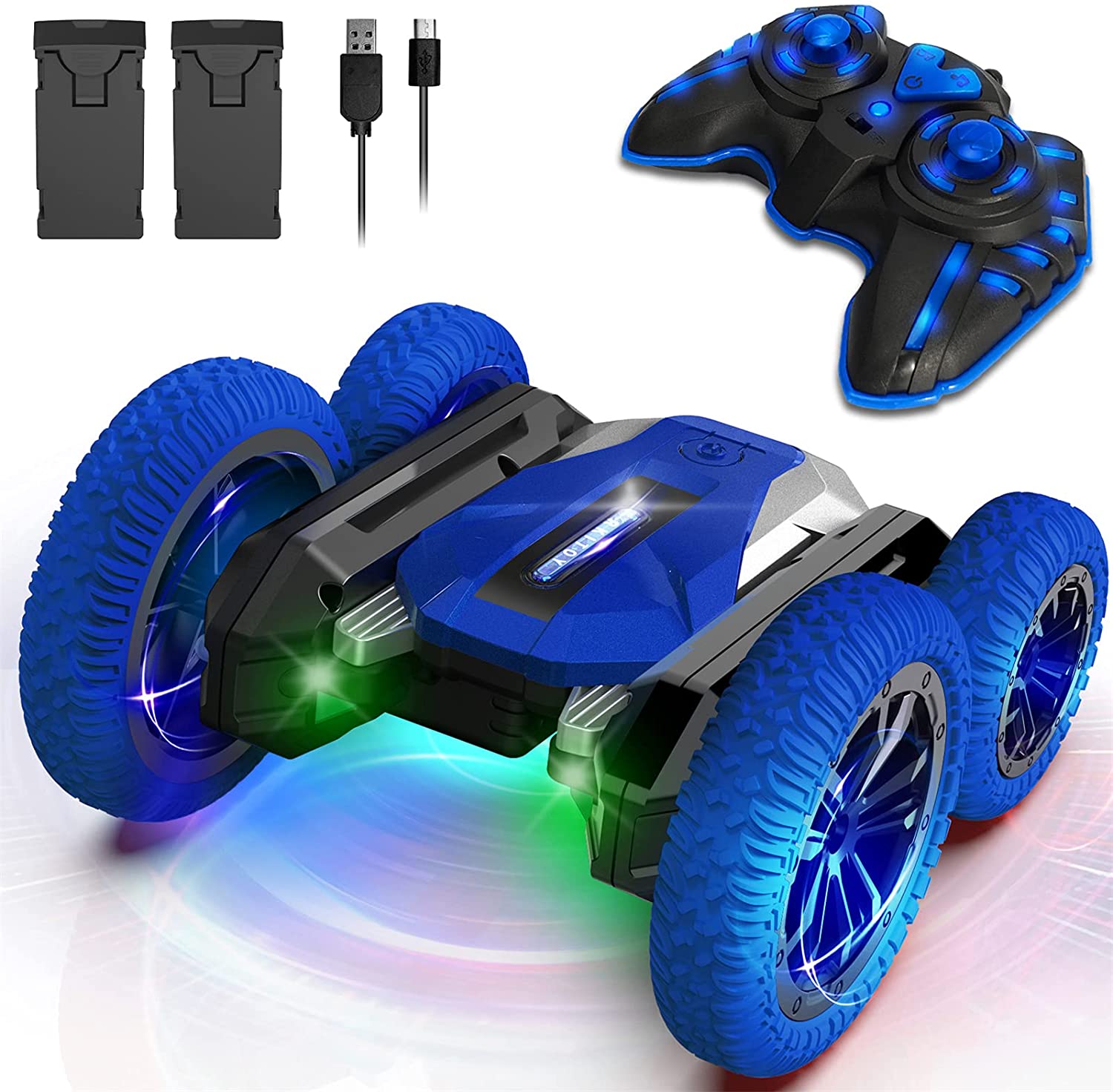 Cool design and features: With TRP tires, remote control cars allow kids to play in complex environments such as beaches,wetlands and grasslands.It can be carried anywhere without worrying about bad terrain. Adds a lot of fun to childrens outing.It allows kids to sing and dance together with the rotation of the rc car. Stunt car has 4 different colors of Led headlights and dynamic music, which changes with the turning of the stunt car, creating endless fun and atmosphere for boy girl.