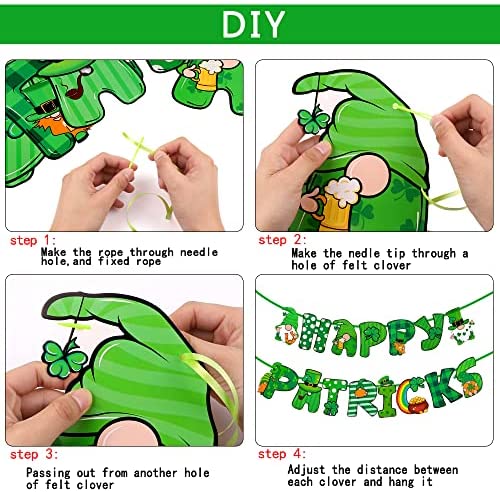 Package Includes: 1 pcs St Patricks Day banner , HAPPY PATRICKS ,perfect match and enough for your St. Patricks Day decoration use Material: The St Patricks Day garlands are made of thick card,bright green color, cute patterns and reusable for many times using. Wide Usages: You can Irish Gnome garlands in the living room, corridor, bedroom, stairs, etc. wherever you can think of, to create your St. Patricks Day atmosphere. Size: Each Shamrock Clover banner flag is about 18 x 13 cm/ 7.1 x 5.1 inch,Great size for St Patricks Day decorations outdoor and indoor Satisfaction guarantee:If you receive any questions about the quality of our products,Please click on the Seller Contact button in your account to send us an email. We will respond to you as soon as we receive the message and give you a satisfactory answer.