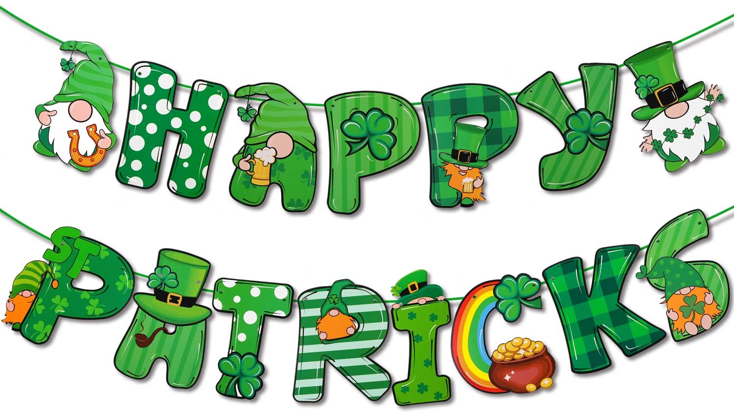 XIMISHOP St Patricks Day Banner,Irish Gnome Hanging Banner Garland Shamrock Clover Banner for St Patricks Day Decorations