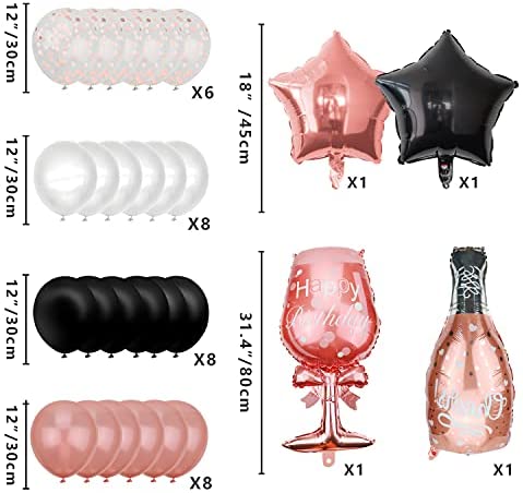XJLANTTE Rose Gold and Black Party Decorations – Happy Birthday Banner, Balloons, Fringe Curtains, Tablecloth Cake Topper for 1st 16th 21st 30th 40th 50th Girls Supplies