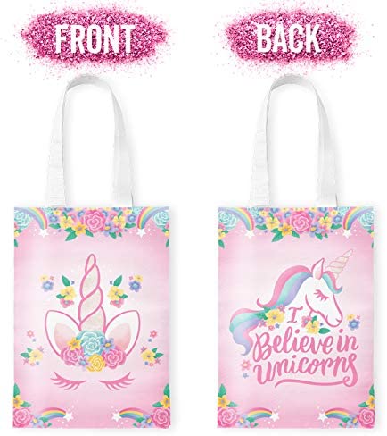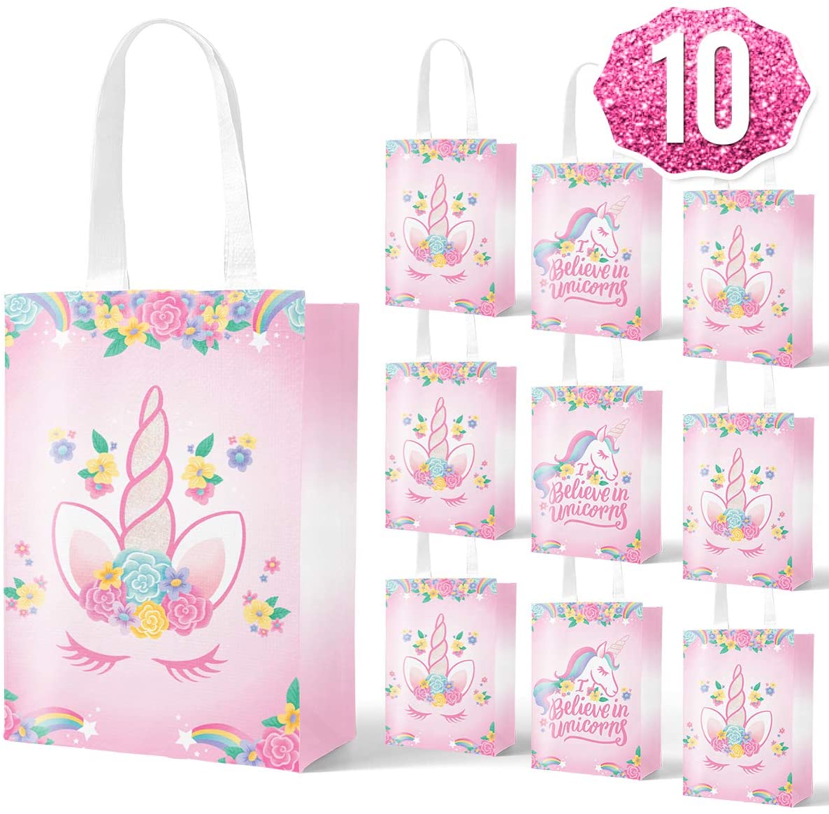xo, Fetti Unicorn Party Bags, Gift Favor Bags, Goodie Bags – 10 Pack – Reusable Tote Bag, Birthday Party Supplies, Unicorn Decorations, Baby Shower