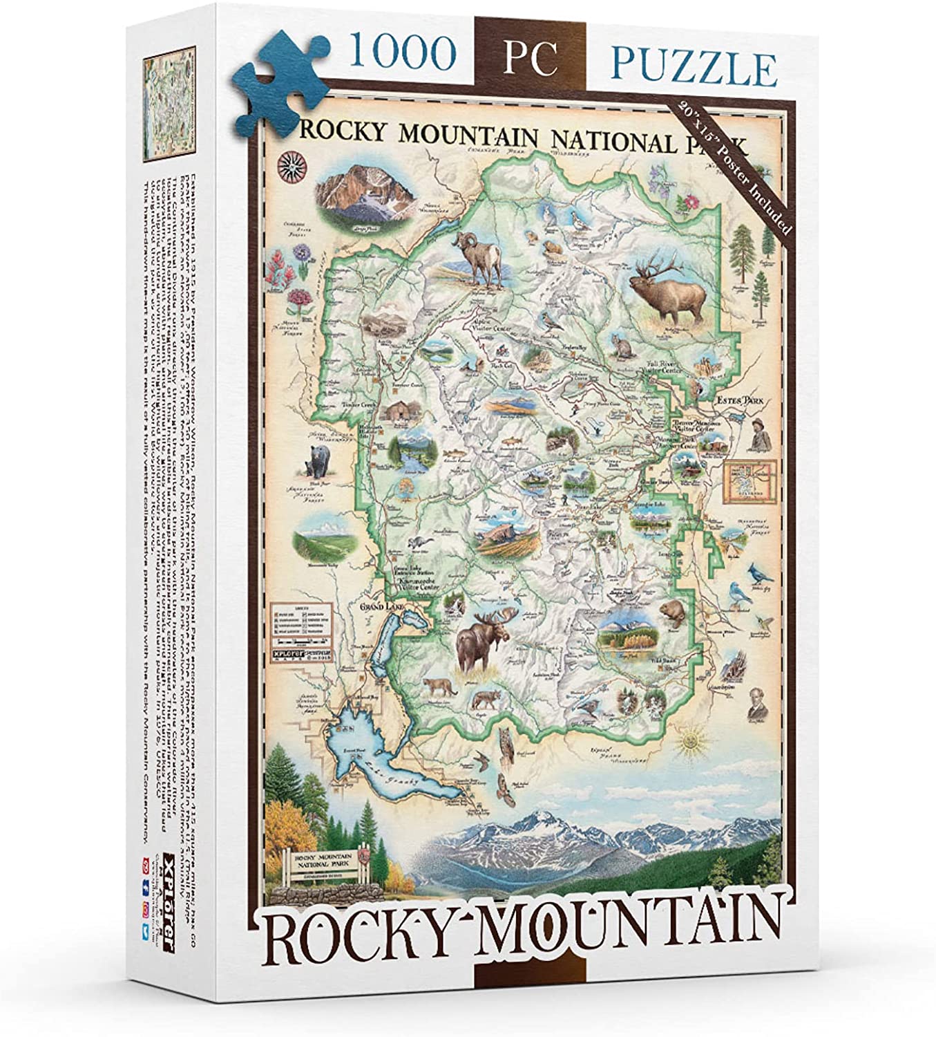 Xplorer Map 1000 Pieces Rocky MTN National Park Cardboard Jigsaw Puzzle – Educational Jigsaw Puzzle with Regional, National Parks, Tourist Spots, Landmarks for Adults, and Teens.