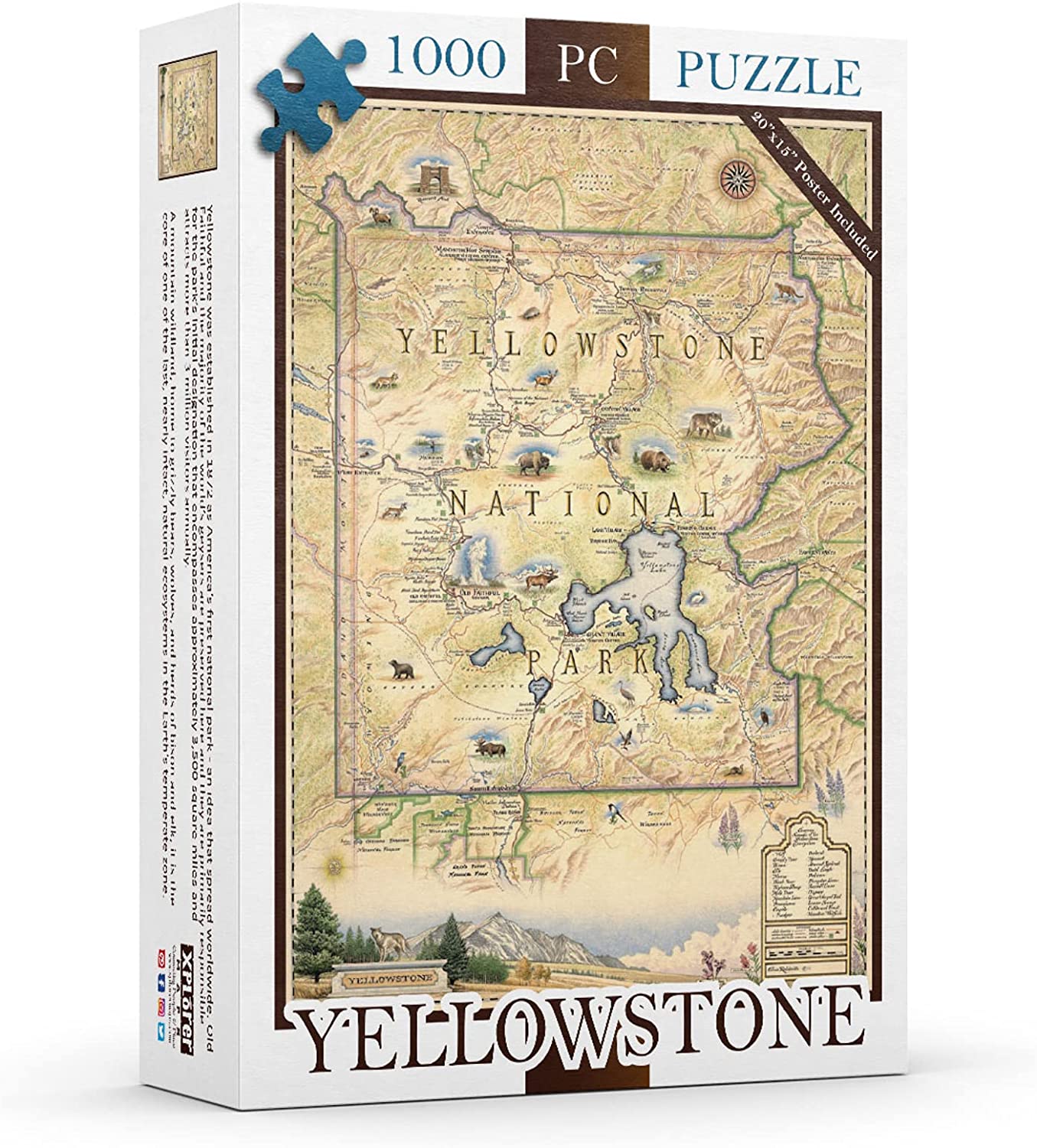 Xplorer Map 1000 Pieces Yellowstone National Park Cardboard Jigsaw Puzzle – Educational Jigsaw Puzzle with Regional, National Parks, Tourist Spots, Landmarks for Adults, and Teens.