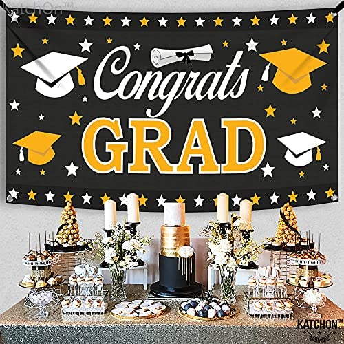 XtraLarge Congrats Grad Banner – 72×44 Inch, Black | Big Black and Gold Graduation Decorations 2022 | Graduation Banner for Graduation Party Supplies | Congrats Banner for Grad Party Decorations 2022