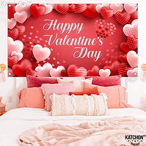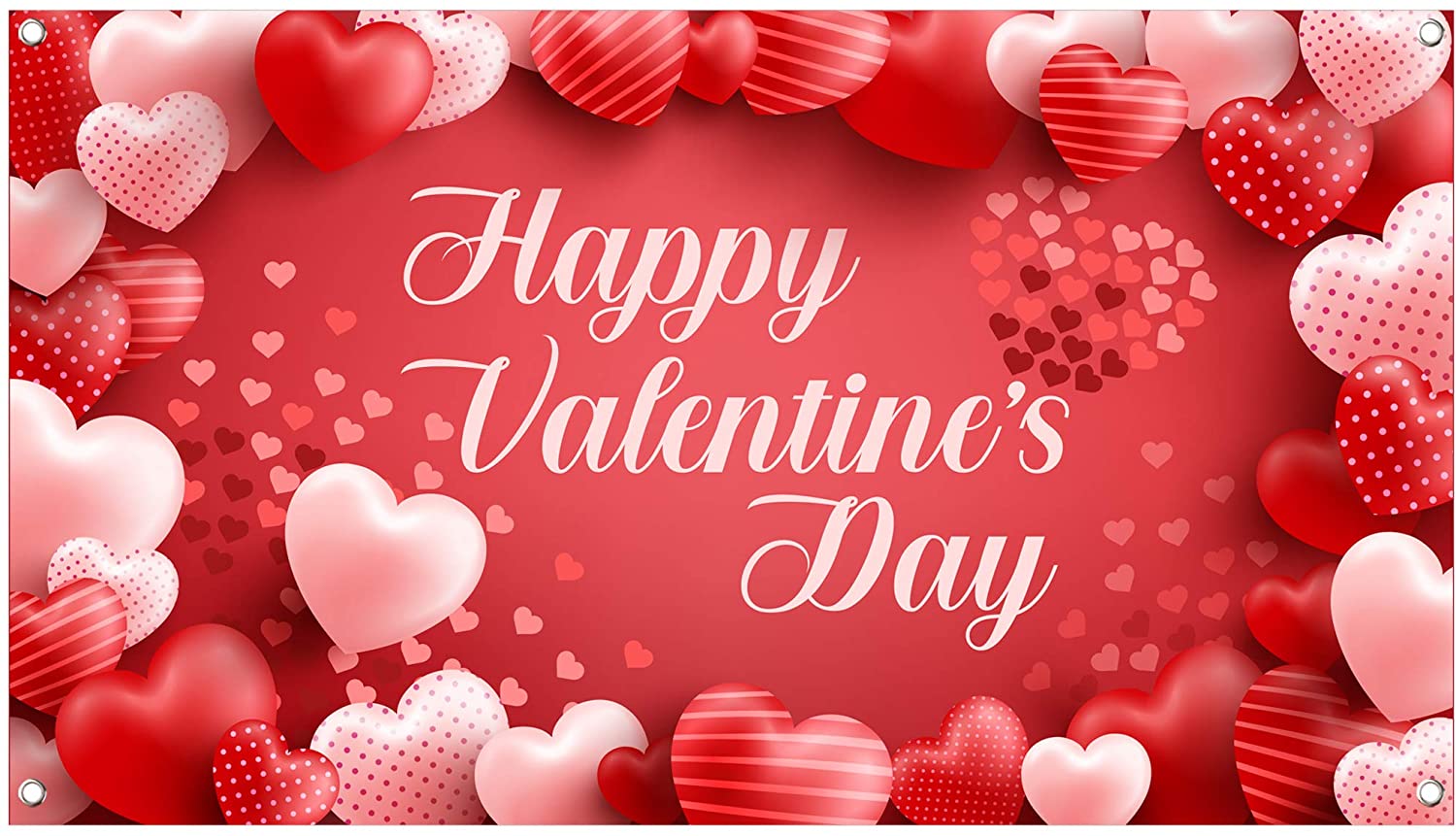XtraLarge Happy Valentines Day Banner – 72×44 Inch | Pink and Red Heart Romantic Love Banner for Valentines Day Party Decorations | Happy Valentines Day Backdrop for Valentines Day Decoration