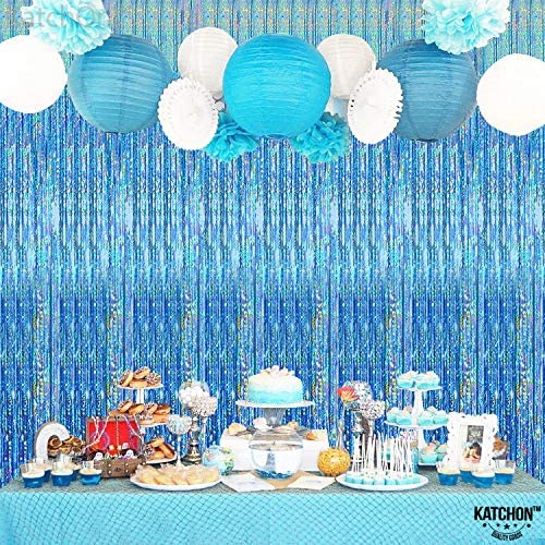 XTRA LARGE IRIDESCENT METALLIC BLUE FOIL FRINGE CURTAIN PARTY DÉCOR – Thinking about what to add on your party backdrops With this tiffany blue par…