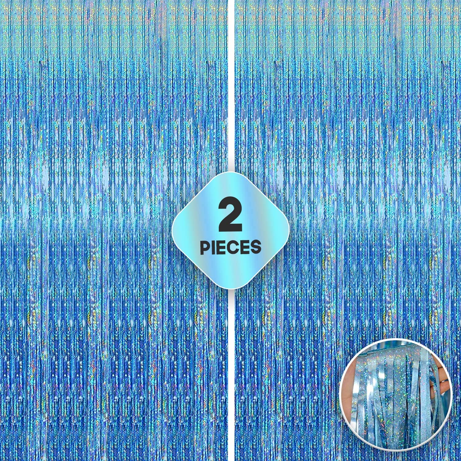 XTRA LARGE IRIDESCENT METALLIC BLUE FOIL FRINGE CURTAIN PARTY DÉCOR – Thinking about what to add on your party backdrops With this tiffany blue party decorations, you can make an elegant entrance curtain for your guests. Let them be amazed with your great DIYs with blue foil fringe curtain. With a touch of your creativity, you can make an elegant Foil Fringe Chandelier at the center of your venue. Create your own DIYs now! EASY TO ASSEMBLE | PREMIUM QUALITY – This classy baby blue fringe curtain comes with an adhesive strip at the back so it would be very easy to hang on your wall. Plus this beautiful foil fringe backdrop Party Decorations could stay hanging for days. Also the cut of the tinsel curtain blue is pretty wide, it wont easily strip down. It will surely transform your home or office into a classy and glittering purple & blue party decorations. REUSABLE | GLIMMERING AND STUNNING NAVY BLUE FRINGE BACKDROP FOR PHOTO BOOTH – This elegant iridescent blue fringes is a perfect backdrop for the photo-booth decorations and blue bandana party decorations. Everybody will surely love taking selfies in front of this blue foil fringe decoration. You could also use it for your dessert table and champagne bar. You could also add banners and balloons to complete the look. BUY WITH CONFIDENCE l 100% SATISFACTION GUARANTEE – Customer satisfaction is our main objective, so we personally made sure that the materials we used in blue foil fringe curtain are Grade A Quality. Use it as doorway streamer curtain, hallway streamers, birthday fringe, doorway curtain party. If you are not satisfied with our baby blue foil curtain backdrop, we guarantee to give you 100% full money back. Place your order now! PAIR AND MATCH WITH DIFFERENT COLOR FRINGE CURTAINS TO ACHIEVE YOUR DESIRED COLOR COMBINATION – Show off your creativity by pairing this shades of baby blue fringe backdrop with other Fringe of different colors to achieve the color combination that you desired. You could pair these blue party decorations and match for baby shower decoration and also for mermaid party decorations or under the sea theme backdrop with this foil curtain blue. It’s like walking into a magical party reception.