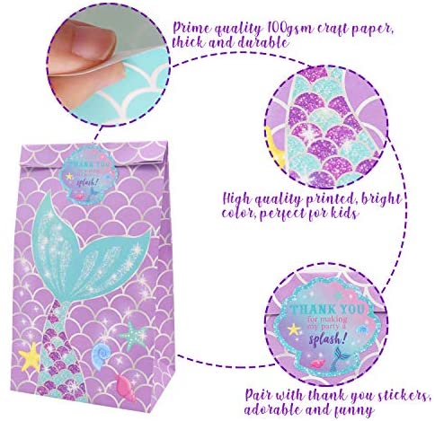Perfect Decorations: Purple, pink, tiffany blue and mint colors are most adorable color combinations, our mermaid candy bags will attract all the eyes, dreamlike for your girl’s party decorations. Add a special touch to your Mermaid or under the sea themed Party with these adorable Favor Bags designs. Pair with Thank You Labels: The scallop design mermaid thank you stickers are a great way to thank friends for attending your mermaid party or under the sea themed party, and look great attached to our goodie bags and any ocean themed party favor you choose! Value Kits: 3 different designs, total 24 treat bags, these mermaid party supplies offer extra values for your money, ideal mermaid favor bags for girls birthday party, baby shower, bridal shower decorations. Perfect Size: 8.6 x 4.7 x 3.2 paper bag fits plenty of party gifts, candies, treats, small toys, arts and crafts. Satisfaction Service: No questions asked, if you are unhappy with your purchase for any reason, full refund upon return!