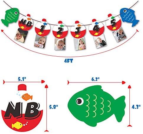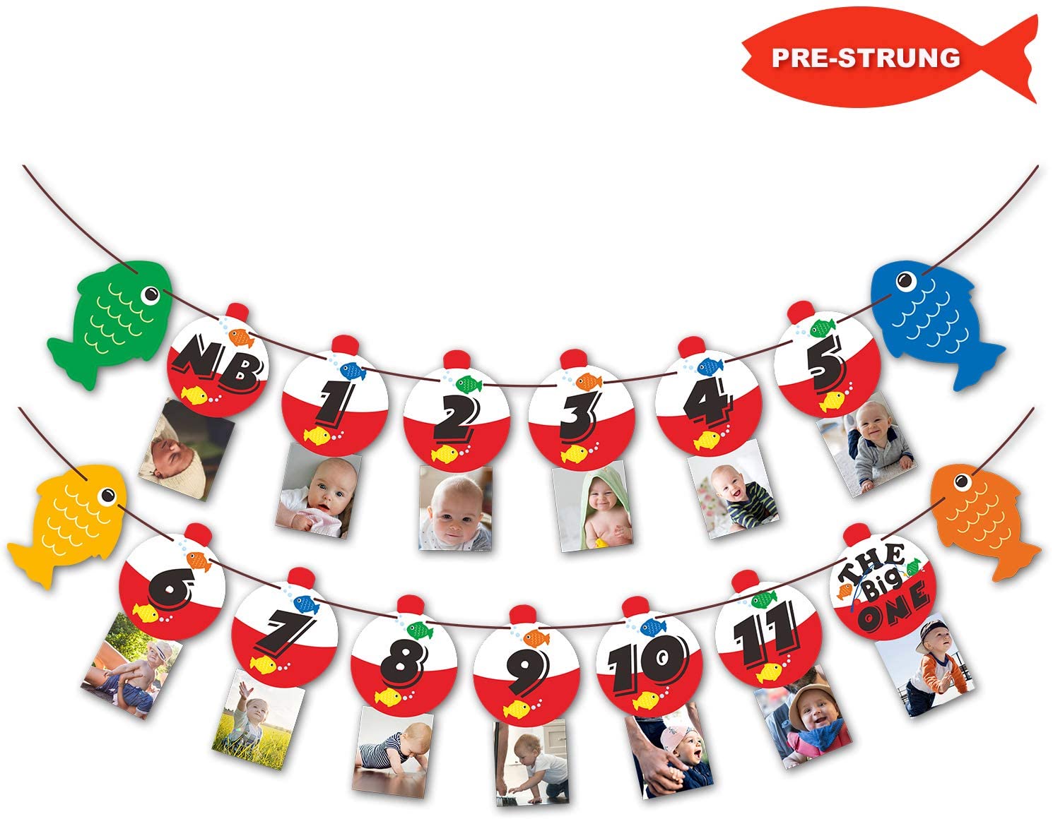 The Big One Gone Fishing Birthday Party Supplies-Package contents 1 set pre-strung monthly photo banner from newborn to the big one, including 4 co…