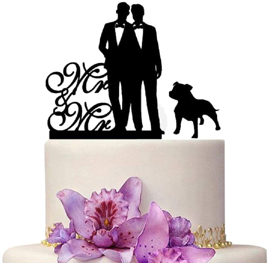 YAMI COCU Mr And Mr Gay Wedding Cake Topper Dog Acrylic Silhouette Couple Groom and Groom Wedding Party Decorations