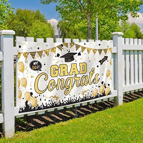 YEHUARIS 2022 Graduation Banner,Extra Large 74.8×43.3 INCH Congrats Grad backdrop for photography,Graduation Party Supplies 2022,Class of 2022 Graduation decoration for Indoor/Outdoor (White+Gold)