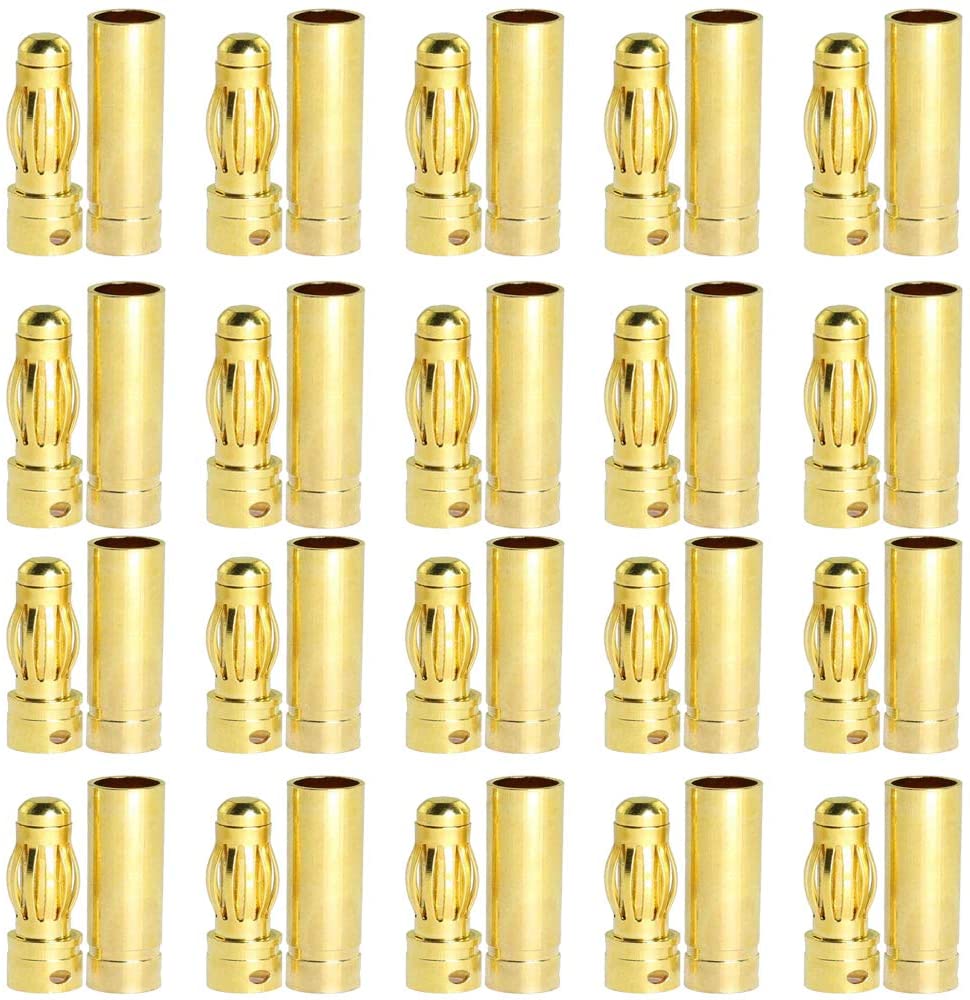 Yiqigou 20 Pairs Gold-Plated 4mm 4.0mm Male Female Banana Plug Bullet Connector Adapter for RC Lipo Battery ESC Motors