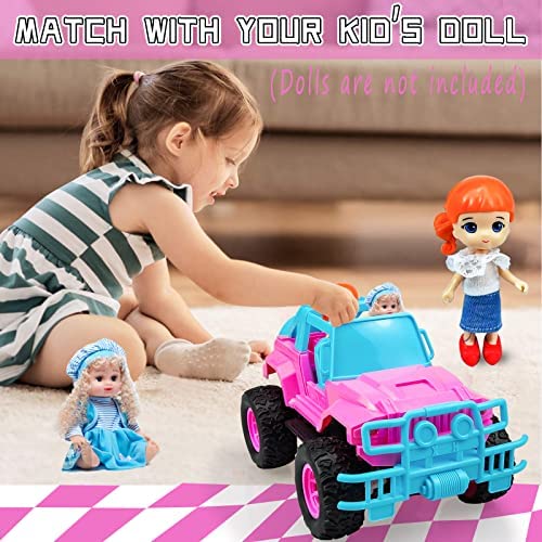 2021 Newest Rc Car: Our Purple/Pink Rc Car has realistic race looks.Provided Super Realistic Driving Experience for kids,Develop girls hand-eye coordination and manipulation skills!Full open roof, can place 2 mini dolls,make more fun when play!Your little girls will love it!