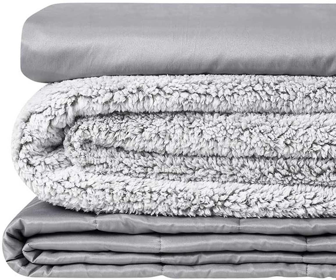 YnM Weighted Blanket and Duvet Covers u2014 Hot and Cold Duvet Cover Set (3 Pieces) u2014 (Teddy Bear Velvet Light Grey, 80×87 20lbs), Two Persons(90~160lb) Sharing Use on Queen/King Bed