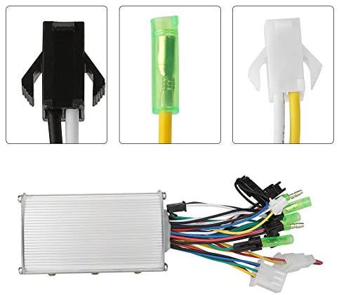 Features:-The controller shell is made of aluminium alloy with design, which can protect the inner circuit due to good heat dissipation feature to avoid thermal overloading.-This item is a brushless motor controller, it can provide steady speed and sensitive control of braking and direction changes.-The wires and interfaces are durable, and ensure low malfunction of long time use.-The interfaces have instruction labels on them for your easy installation.Suitable for electric bicycles, scooter, etc.Specification:Material: Aluminium alloyRated Working Voltage: 36/48VRated Power: 350WCurrent: 13ALow Voltage Protection: 31/42VSuitable Motor Phrase Angle: 60 / 120 degreeSuitable for: electric bicycle, scooter, etcSize: Approx. 9 x 5.3 x 3cm / 3.5 x 2 x 1.18inchWeight: Approx. 204gPackage List:1 x Brushless Controller