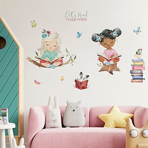Yovkky Letu2019s Read Black Girl Wall Decals Stickers, Diversity Inclusion Equality Reading Room Nursery Decor, Butterfly Book Bunny Decorations African American Kids Classroom Playroom Bedroom Art Gift