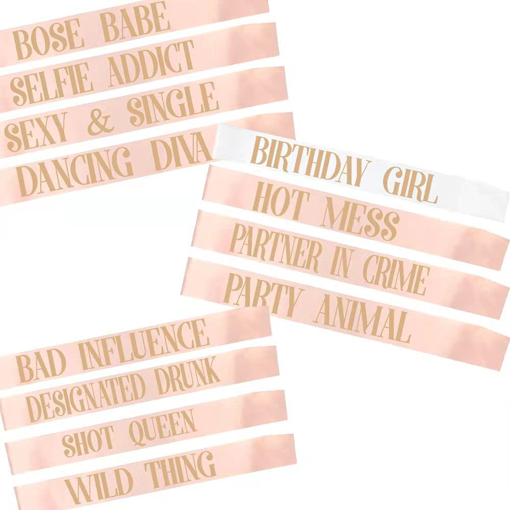 YZDING Birthday Sashes for Girl Women, Happy Birthday Queen Gift Sash Set for Party Supplies Fun Party Favors Decorations,12 Pack (Rose Gold and White), 33×3.8 Inch