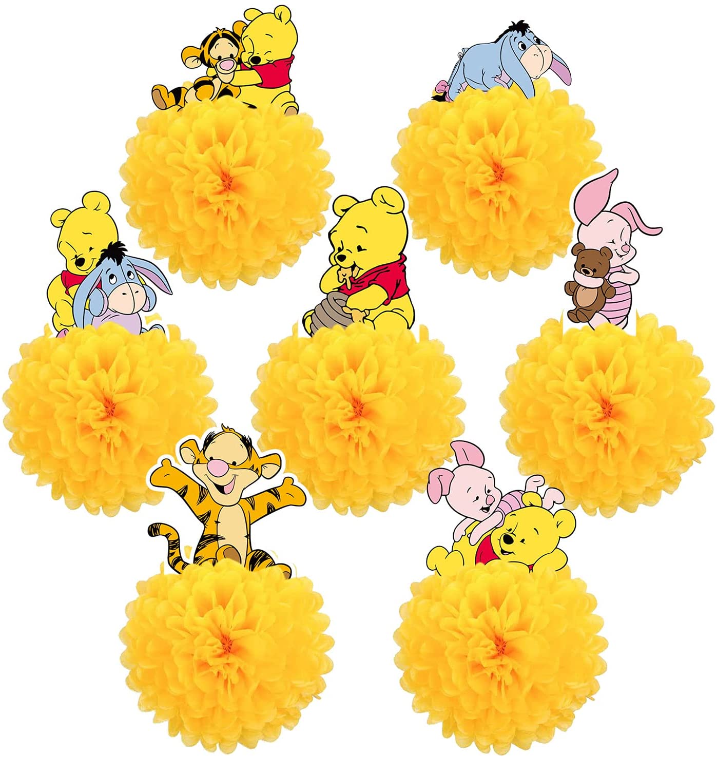 ZEADERS 7Pcs Winnie The Pooh Honeycomb Centerpieces 3D Table Decorations,Bear Table Decor Birthday Party Supplies, Paper Pom Poms Flower