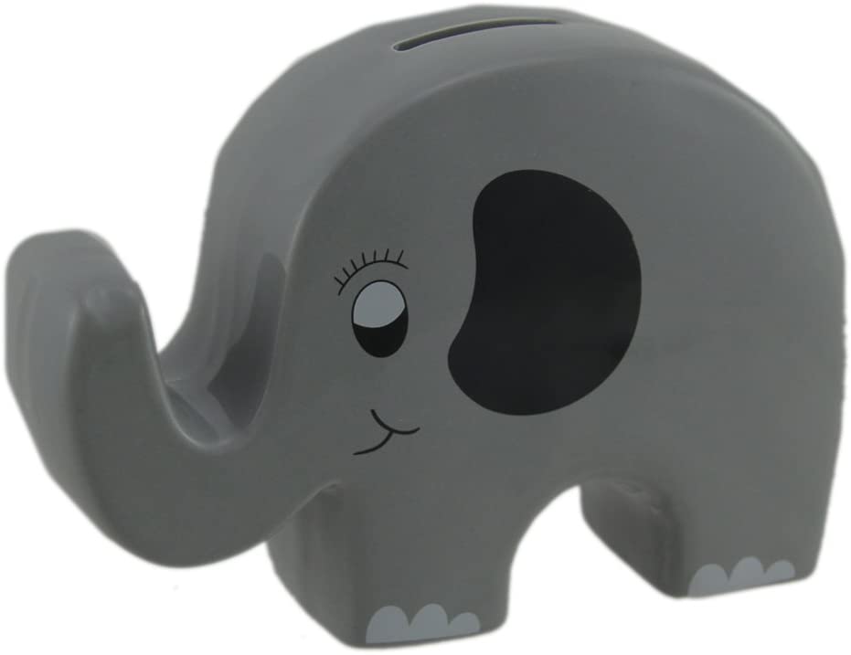 Zeckos Whimsical Gray Ceramic Elephant Kids Money Bank