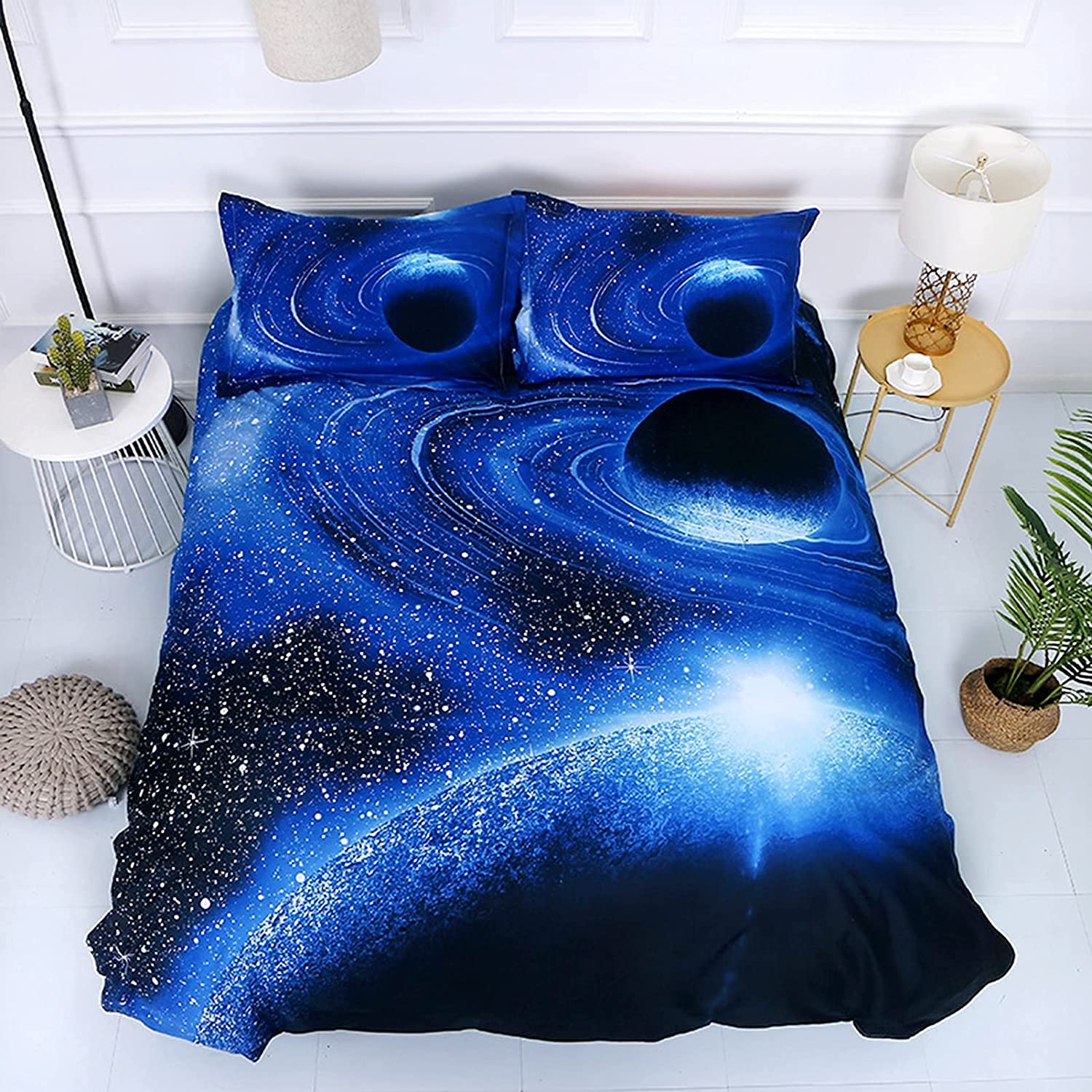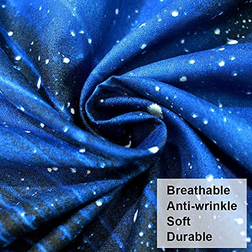 Size: 3D Duvet Cover Set Twin 1 x Duvet Cover 68×90 (about 173cm x 230cm), 2 x Pillowcases 20×30 ( about 50cm x 75cm). (Tip: This is duvet cover set, without the comforter.) The same printing comforter:B0925GXXKQ. Material: 100% microfiber polycotton fabric, very soft and high quality, lightweight breathable, durable. Provide a silky soft touch, help you create a warm and cozy sleeping environment. High color fastness, pattern will not fading. Design: 3D galaxy space design quilt cover, starry planet-themed bedding sets, is your best choice. It is a perfect choice for all style room, especially galaxy space style room. Perfect gift for teens, boys, girls, men or women. Equipped with hidden zipper :Very easy to get comforter in and out of the duvet cover. Care Instruction: Cold water hand washable and machine washable. Do not wash with other items. Do not bleach. Tumble dry at low temperature. Iron as desired.