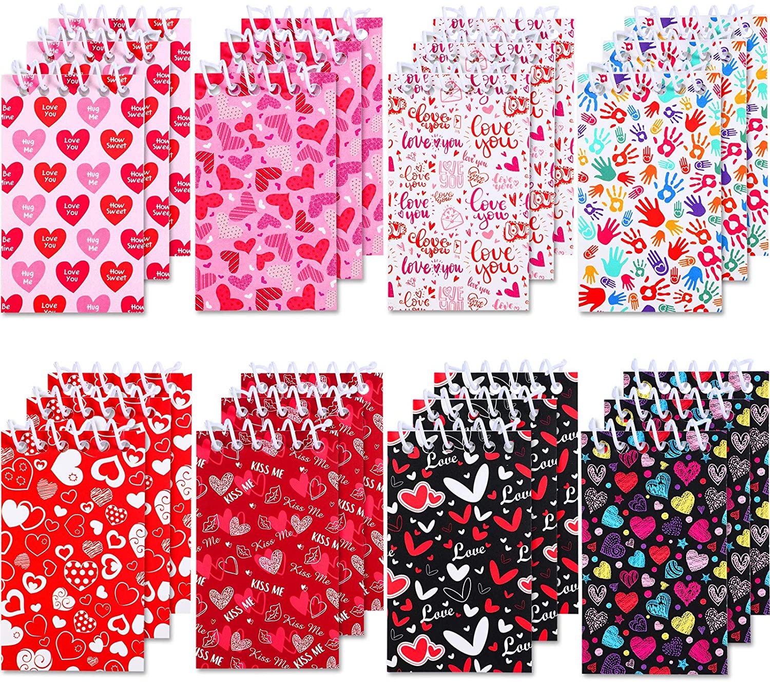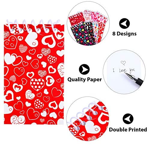 Zonon 24 Pieces Mini Valentines Day Notepads, Mini Tiny Heart Notepads Spiral Notebooks Teacher Student Classroom Rewards Favor Supplies for Girls Boys School Valentines Day Party Decoration Favors