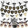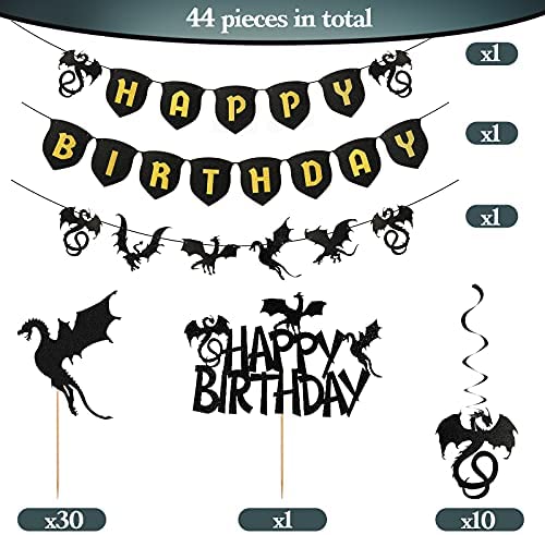 Zonon 44 Pieces Dragon Party Supplies Dragon Theme Cake Decoration Happy Birthday Hanging Banner Swirls Cupcake Toppers Set for Dragon Fantasy Party Supplies
