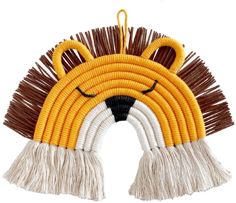 ZOONAI Deer Lion Wall Décor Handmade Weaving Ornament Modern Home Decoration Accessories Hanging Pendant for Party Baby Shower Bedroom Nursery Baby Kids Rooms (Lion)