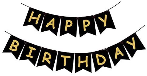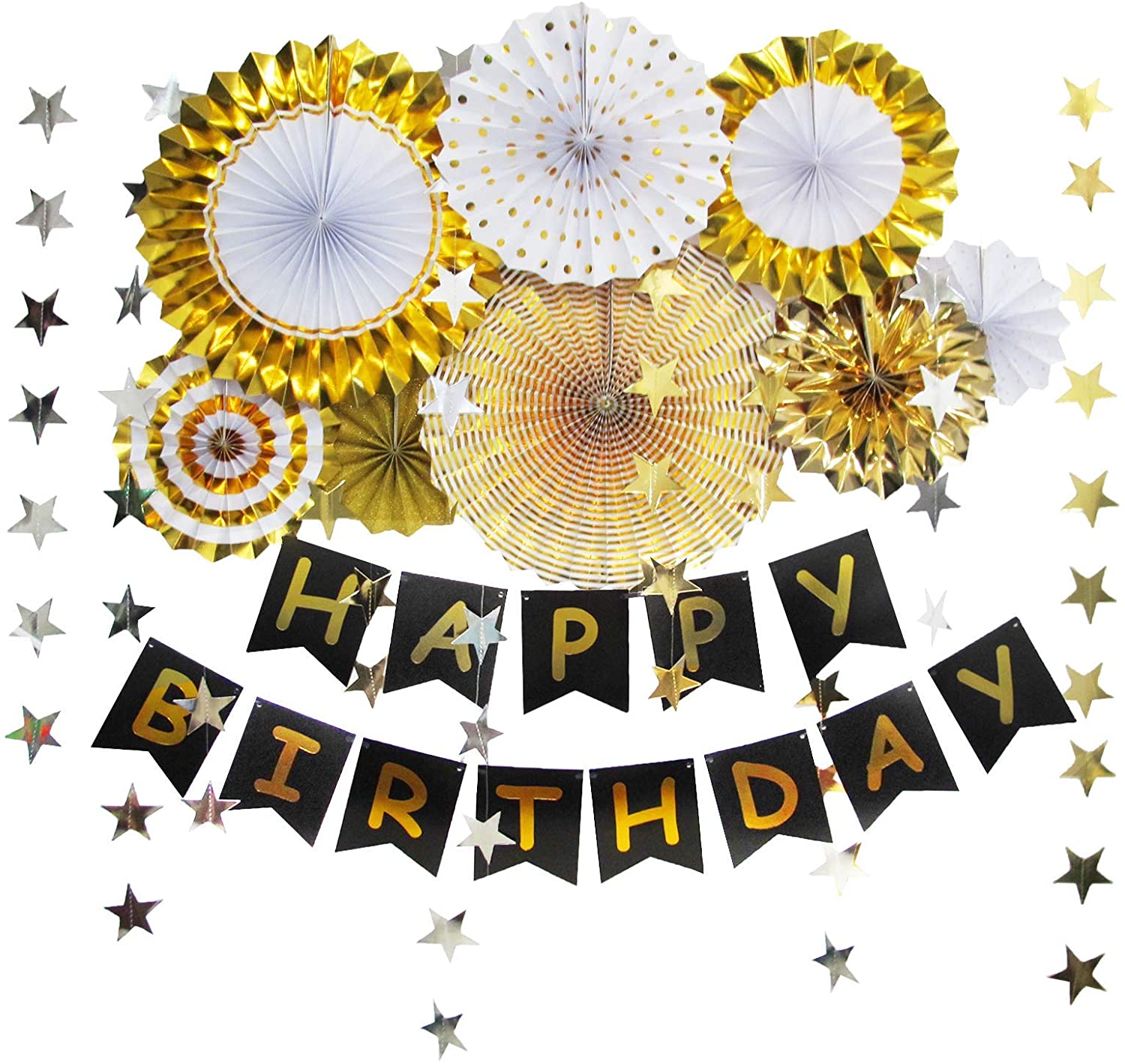 ZoZac Happy Birthday Banner-Birthday Decor for Men-Black and Gold Party Decorations-Star Decor